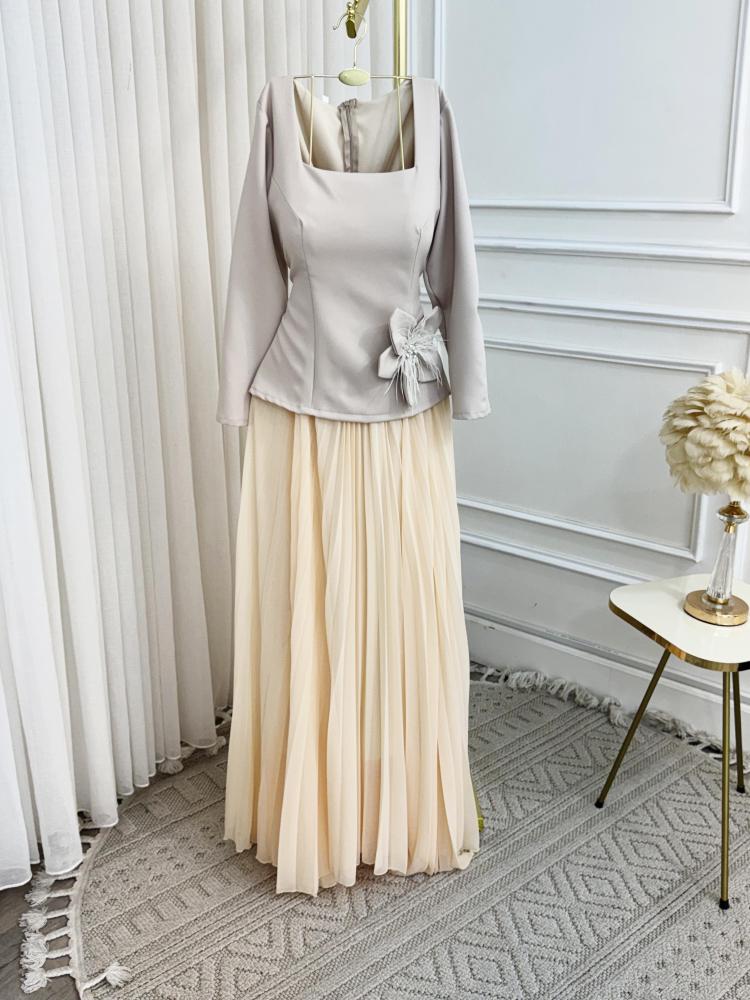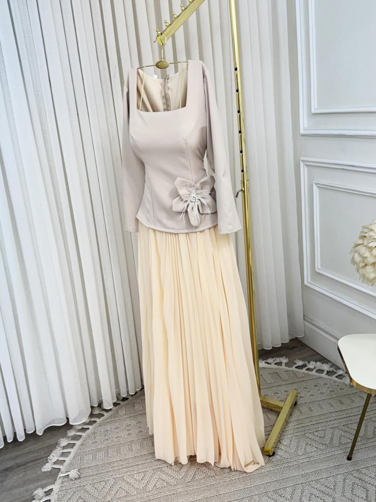 تميزي بأناقة لا مثيل لها مع فستان سهرة بيج ضيق مزين بليسيه، هذا الفستان يجسد الفخامة والأنوثة في تصميم واحد. يعتبر هذا الفستان أَيْضًا مثالي للمناسبات الخاصة مثل حفلات الخطوبة والسهرات المسائية، ما يميزة أَيْضًا قصته الضيقة التي تبرز جمال قوامك، بالإضافة إلى تفاصيل البليسيه التي تضفي لمسة من الأناقة والتميز.
